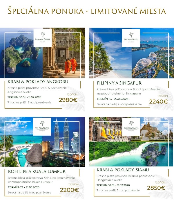 Od založenia Pan Asia Travel v roku 2004 sa špecializujeme na privátne poznávacie zájazdy a pobytové zájazdy v jedinečných rezortoch. Umožňujeme vám vychutnať si cestovanie plné nezabudnuteľných zážitkov s ľuďmi ktorých máte radi, s ktorými si rozumiete a na ktorých častokrát v súčasnom uponáhľanom svete nemáte čas.