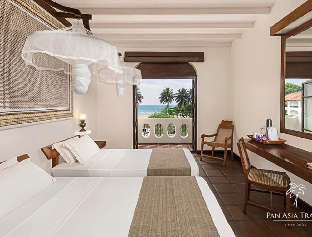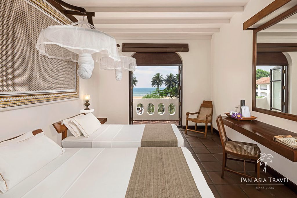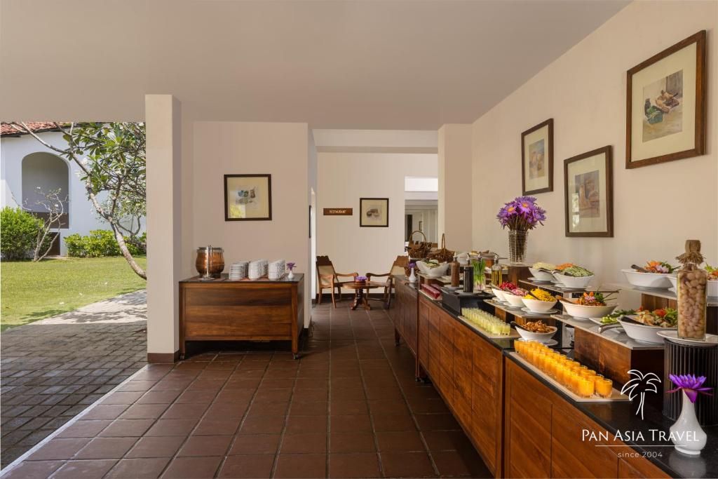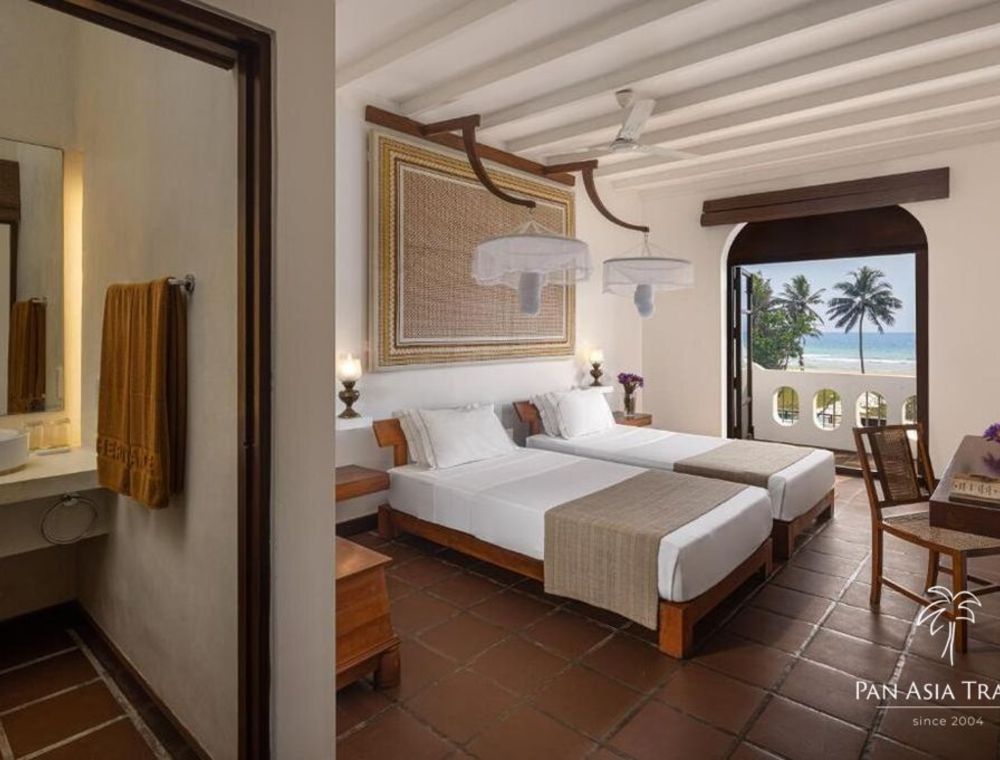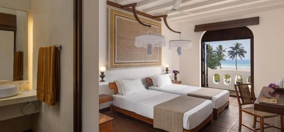 Rezort bol navrhnutý významným srílanským architektom Jeffrey Bawom a poskytuje ubytovanie v 64 izbách 4 kategórií s minimalistickým dizajnom, v ktorom prevažujú prírodné farby a materiály. Termoska na izbe je na bylinné čaje, ktoré sú hosťom k dispozícii počas celého dňa, a oranžové róby sú menené 2 x denne.